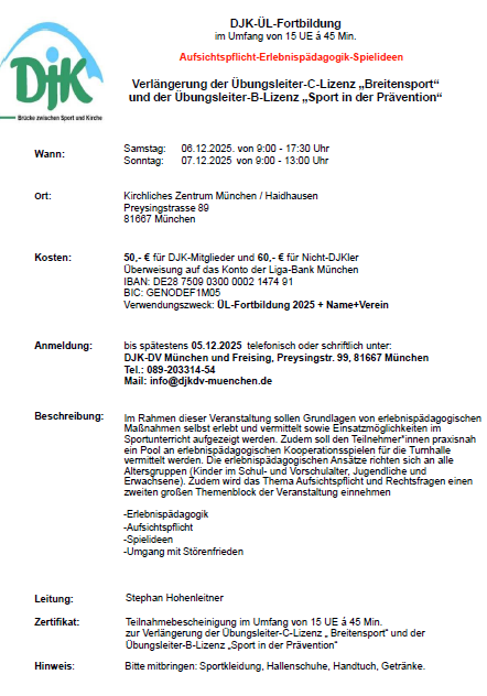 Übungsleiter-Lizenzverlängerung (15 LE)